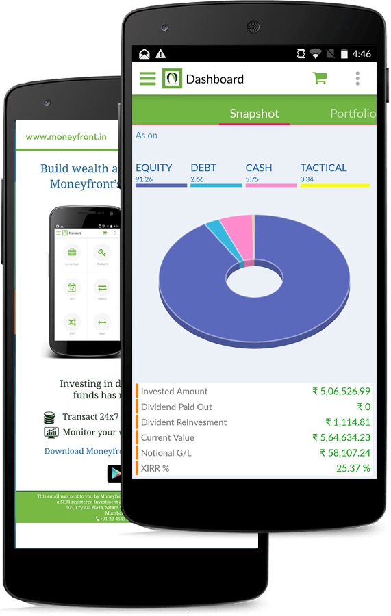 Get upto 1.0% more returns every year on your investments by investing in the Direct Plan of Mutual Funds via Moneyfront. Save on distributor costs and on upfront and in-built commissions which eat into your savings.