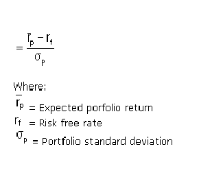 Sharpe ratio = (Mean portfolio return - Risk free rate)/Standard deviation of portfolio return